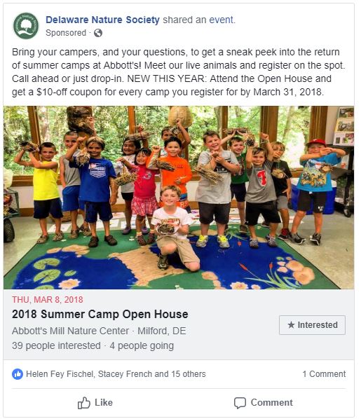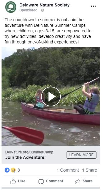 A series of Facebook ads done to promote summer camp open houses and summer camp at Delaware Nature Society sites. Video can be viewed on Facebook here.