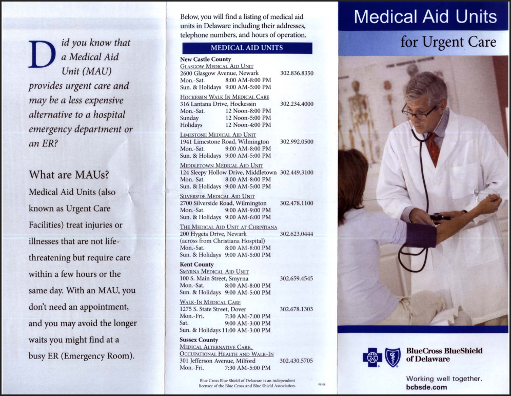 Brochure to promote the use of Medical Aid Units. Full color, trifold brochure created in InDesign.